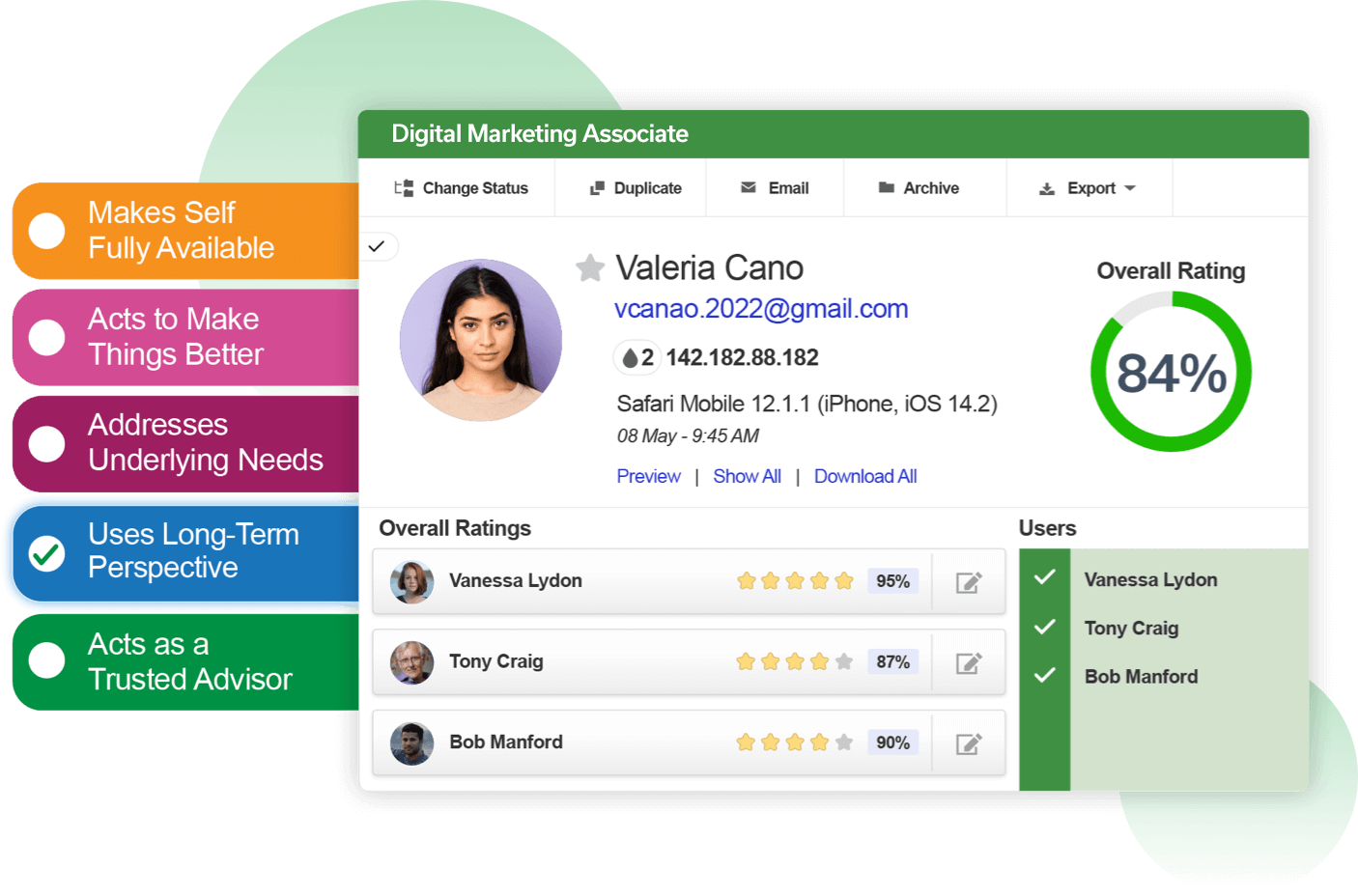 - Our real-time evaluation dashboard helps you easily identify top talent based on rating