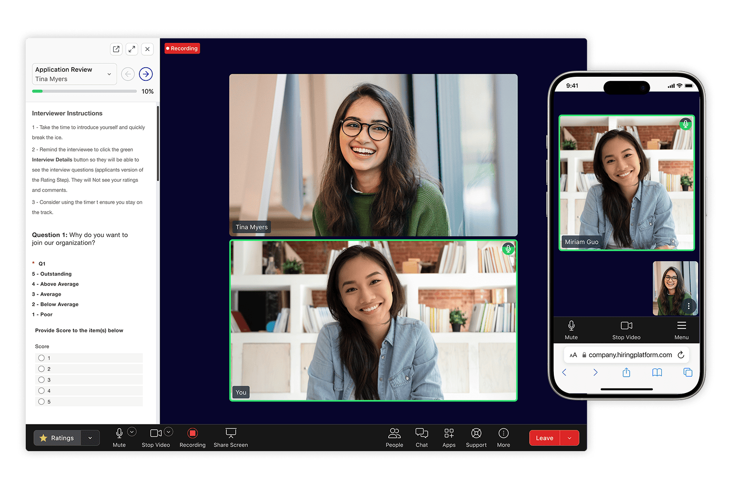 - Provide an app-free, mobile interview experience that applicants can join with ease via email or SMS